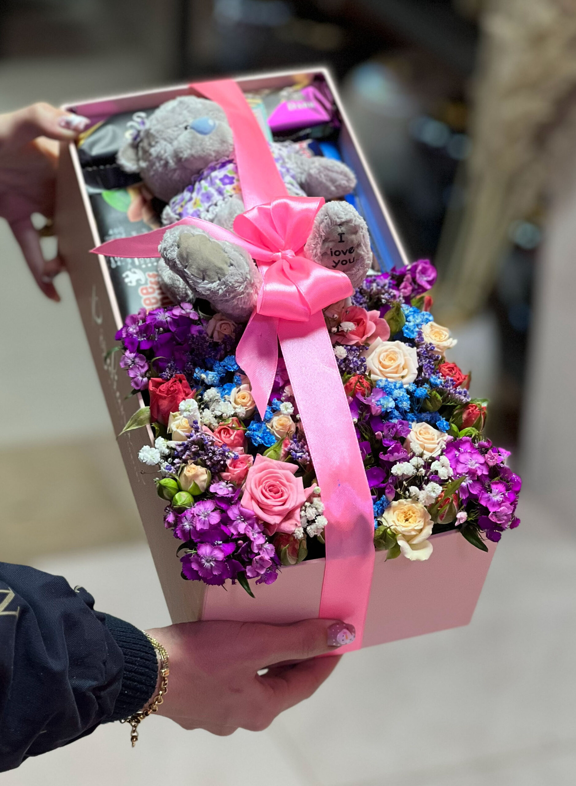 باکس گل ولنتاین مینیاتوری با گل و شکلات 🍫 | ارسال فوری در کرمانشاه 🚚