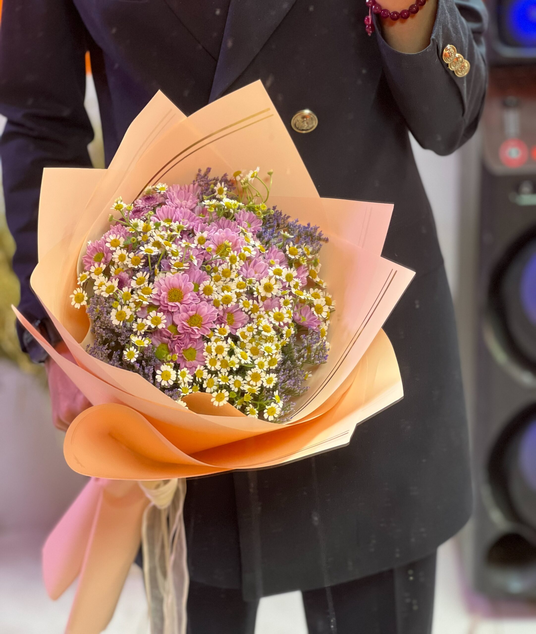 در ابعاد ۳۰×۴۰ سانتی‌متر، این دسته‌گل نمادی از سادگیِ لوکس و شعرِ لطافت است؛ هدیه‌ای برای لبخندهای صمیمی، روزهای دل‌گرم و لحظه‌های بی‌ادعا اما پرمعنا. 🌼