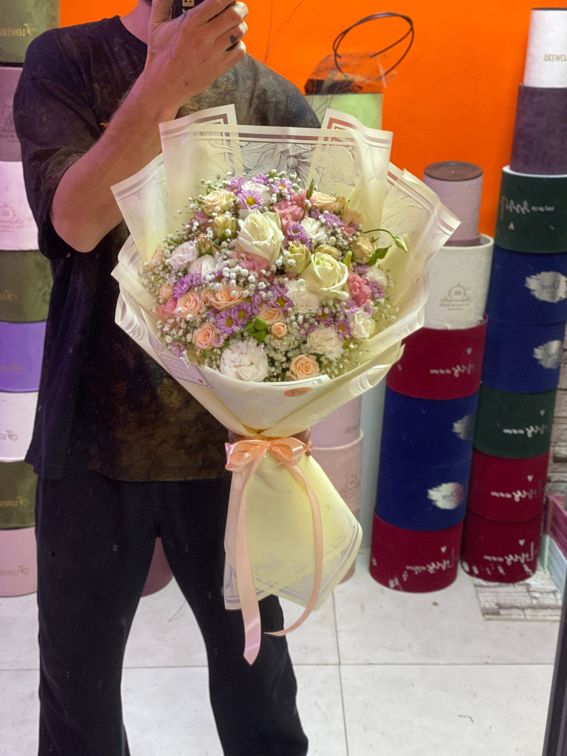دسته‌گل میخک با ترکیب گل‌های طبیعی، رنگ‌های هماهنگ و طراحی مدرن، تجربه‌ای از شکوه و آرامش را برای چشم و دل به ارمغان می‌آورد.