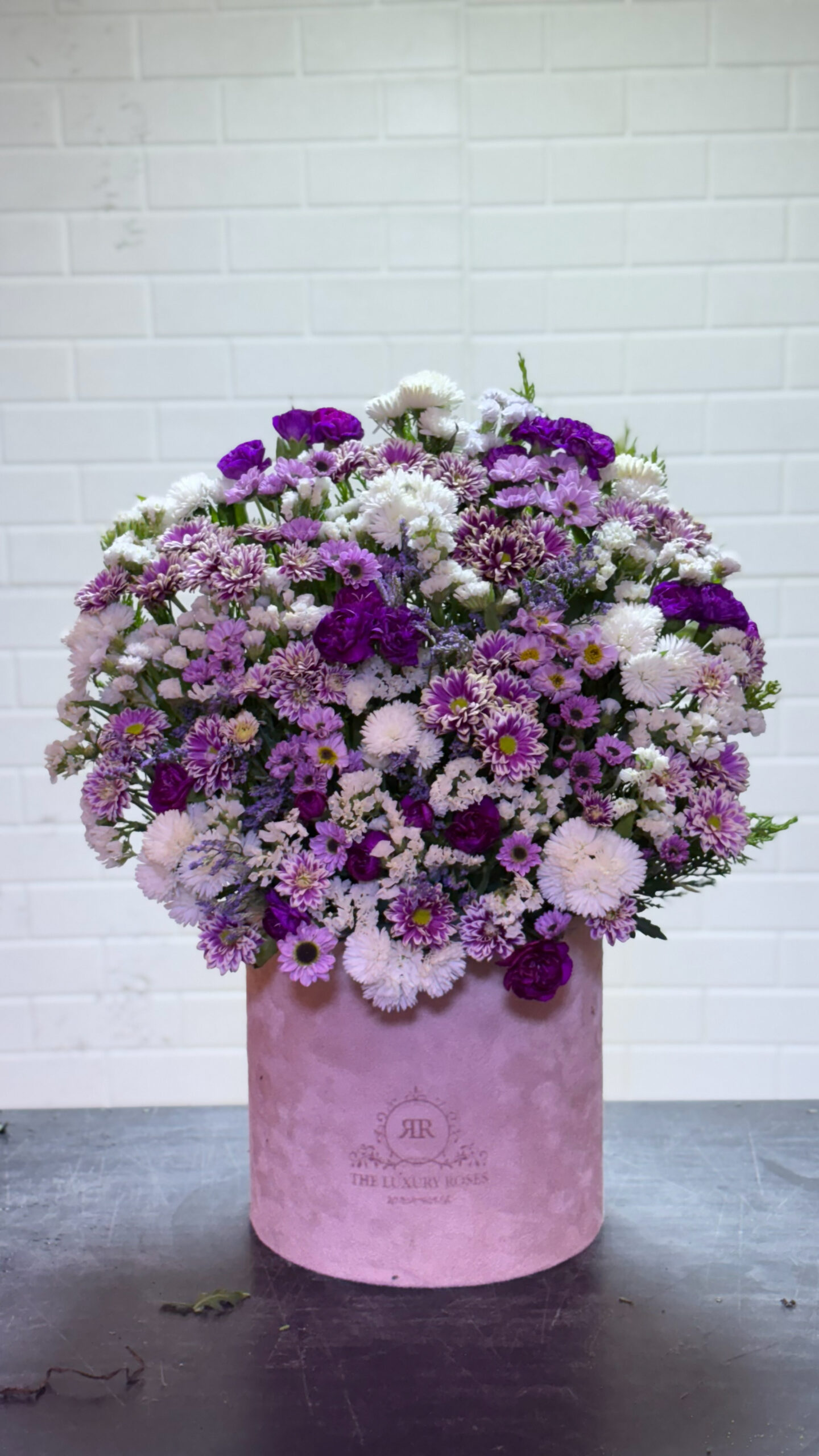 طراحی این باکس، نتیجهی هماهنگی دقیق فرم و رنگ است. مخمل با نرمی خاص خود، حس لمسپذیر و دلنشینی دارد که با تضاد گلهای تازه، تصویری چشمنواز ایجاد میکند. این اثر، انتخابی فوقالعاده برای بیان عشق، قدردانی یا تبریک در هر مناسبتی است.