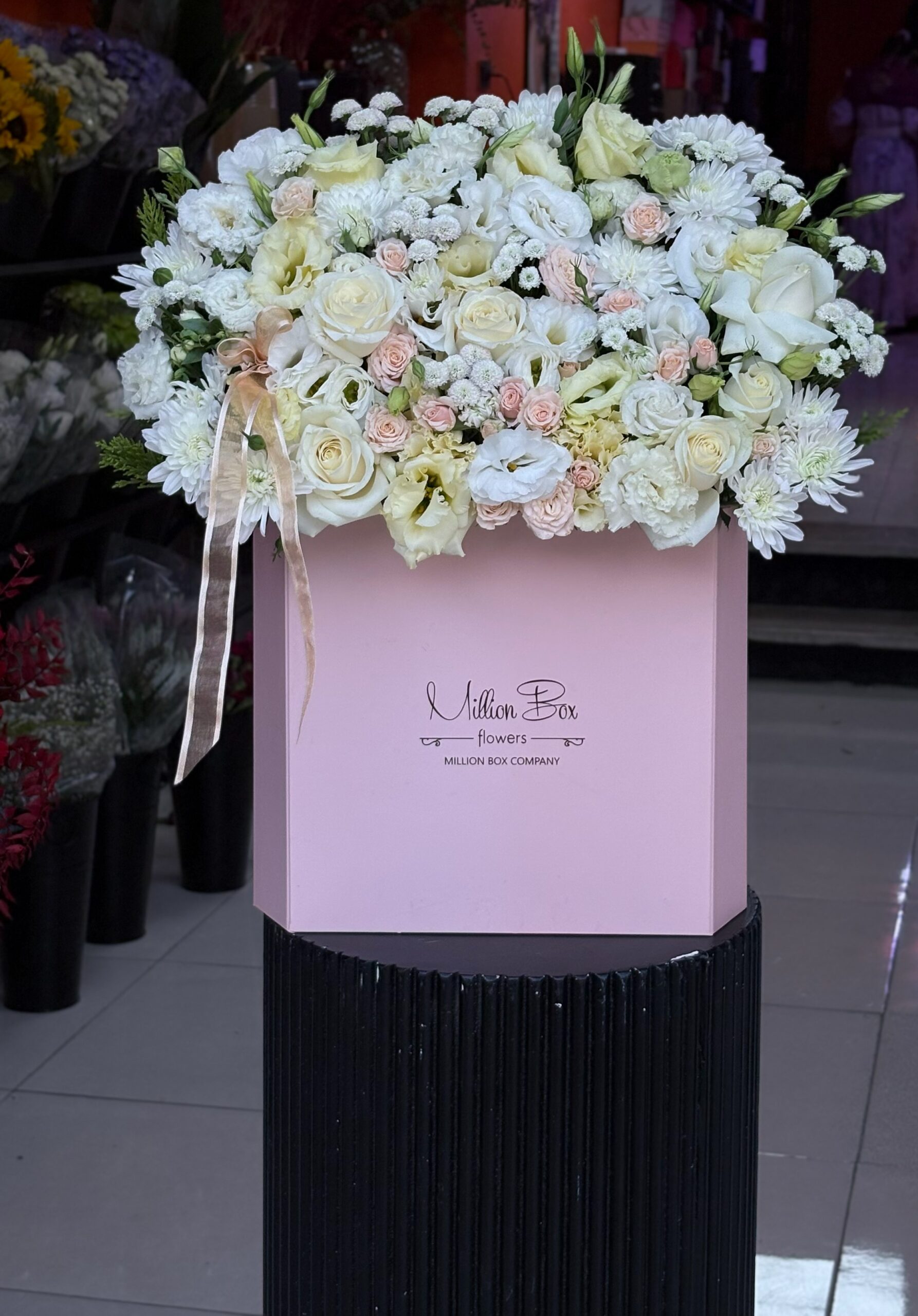 میلیون باکس لوزی اثری منحصربه‌فرد از گالری گل‌ژی است؛ ترکیبی از گل‌های طبیعی، طراحی مینیمال و رنگ‌هایی که احساس را بازگو می‌کنند. هر شاخه‌ی گل، بخشی از داستانی آرام و شاعرانه است که با عشق روایت می‌شود.