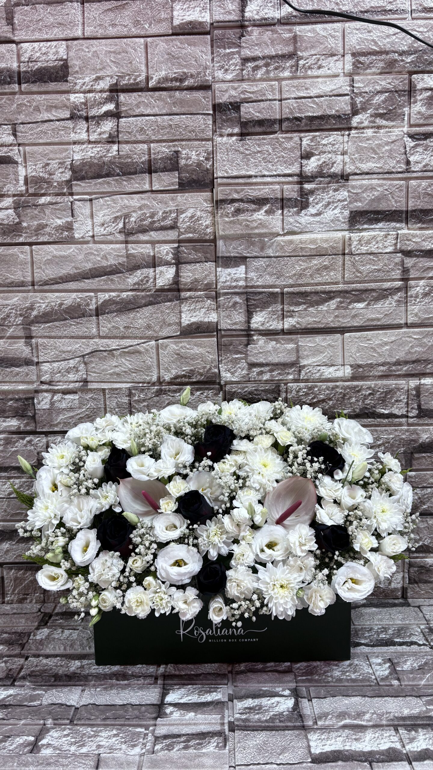رزهای لطیف و خوشعطر، نماد عشق و یاد صمیمانهاند. داودیهای آرام و سفید، پیام جاودانگی و آرامش روحاند. لیسنتوسهای ظریف، نمادی از مهربانی و وداعی آرام هستند. در کنارشان آنتریومهای براق و پرابهت، حس وقار را به ترکیب میافزایند و میخکهای خوشرنگ، رنگی از عشق و صداقت را میان شاخهها زنده میسازند.